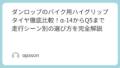 - 「MT(マルチトレッド)」技術の恩恵:センターは耐摩耗性に優れ、ショルダーはグリップ重視というダンロップのお家芸。直進では減りにくく、コーナーでは粘る。この「美味しいとこ取り」を実感できるのが、ダンロップを選ぶ最大のメリットです。