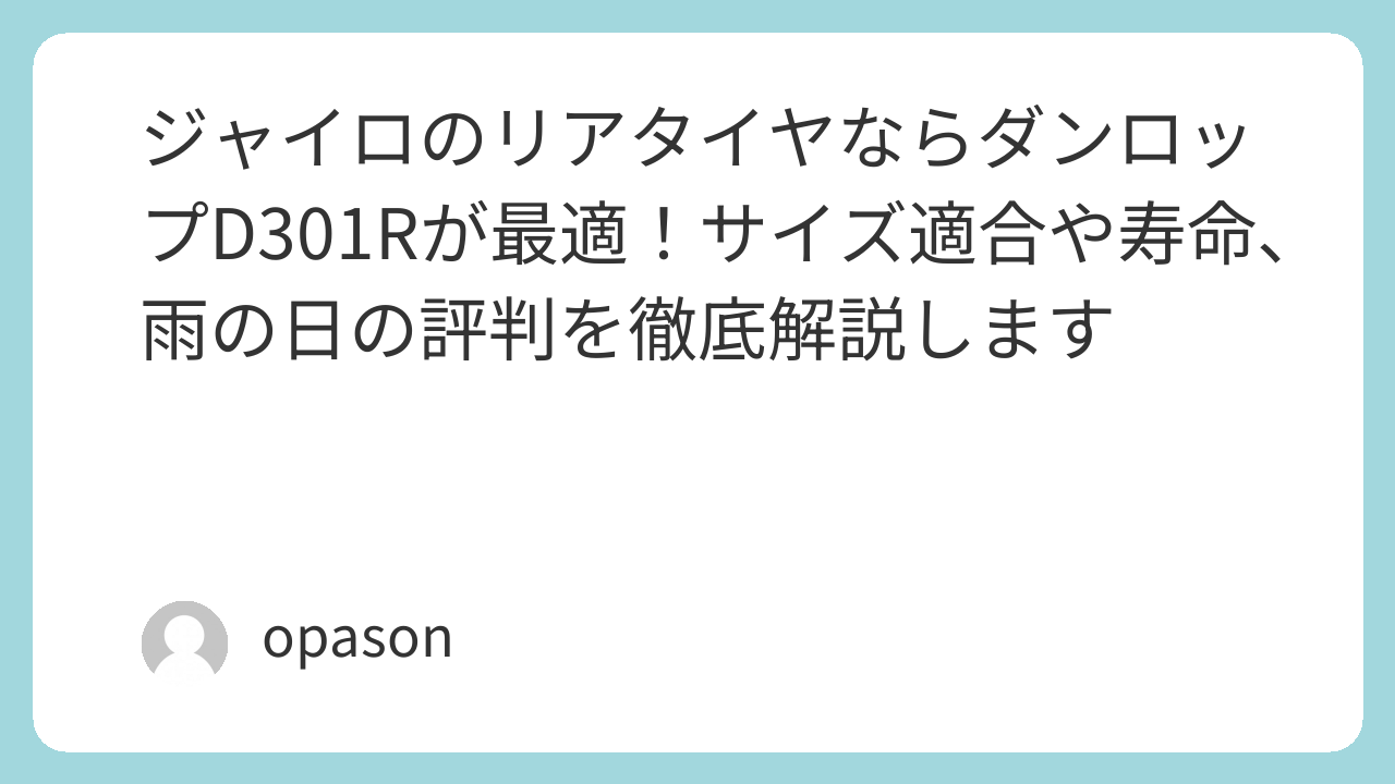 ジャイロのリアタイヤならダンロップD301Rが最適!サイズ適合や寿命、雨の日の評判を徹底解説します