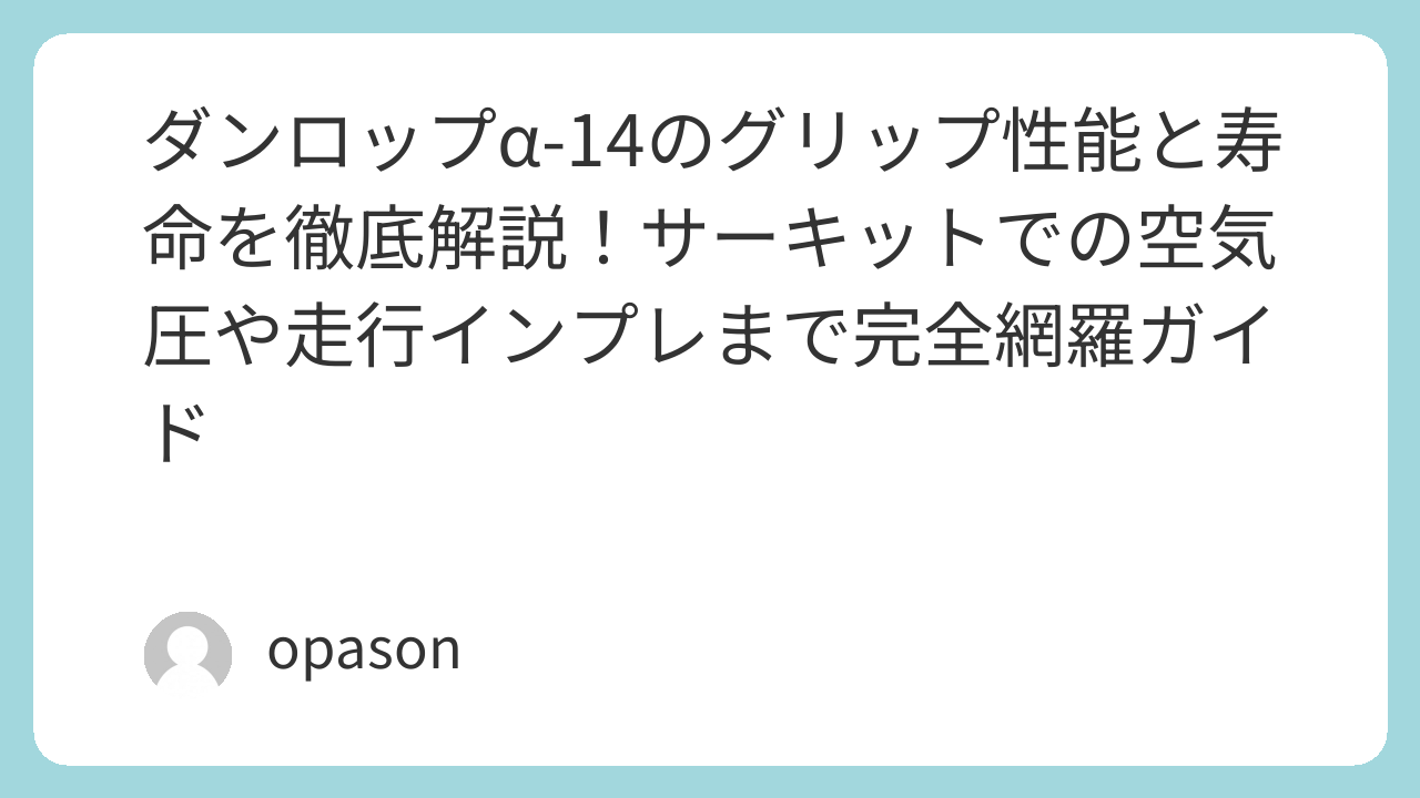 今回は、自走でサーキットへ通い、週末はワインディングを走り込む私が、ダンロップ α-14の真価を本音でレビューします。