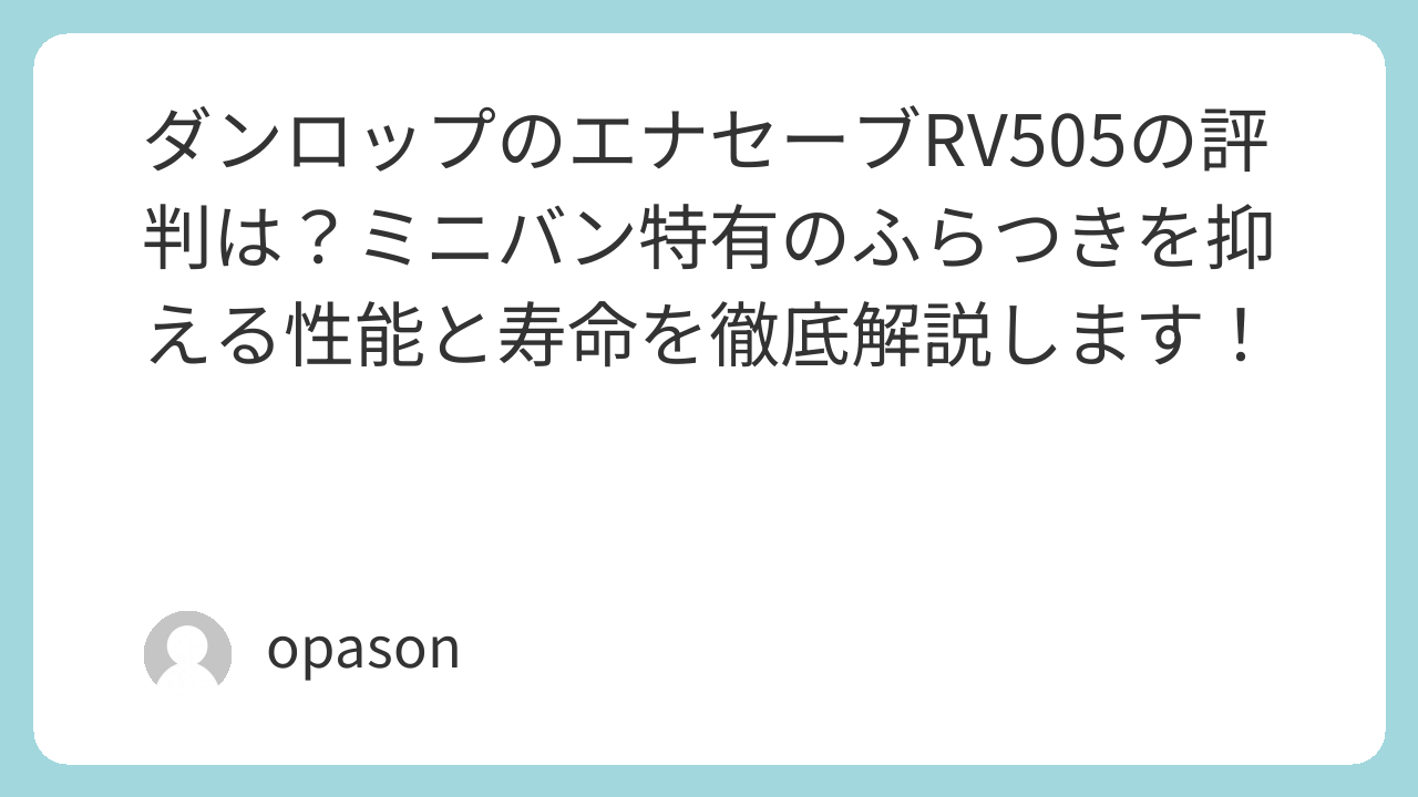 もしあなたがこれらに当てはまるなら、ダンロップ エナセーブ RV505は間違いなく後悔しない選択肢になります。