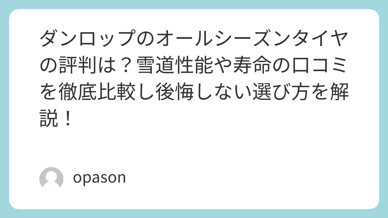 都市部ドライバーの救世主?ダンロップのオールシーズンタイヤを履き潰して分かった本音