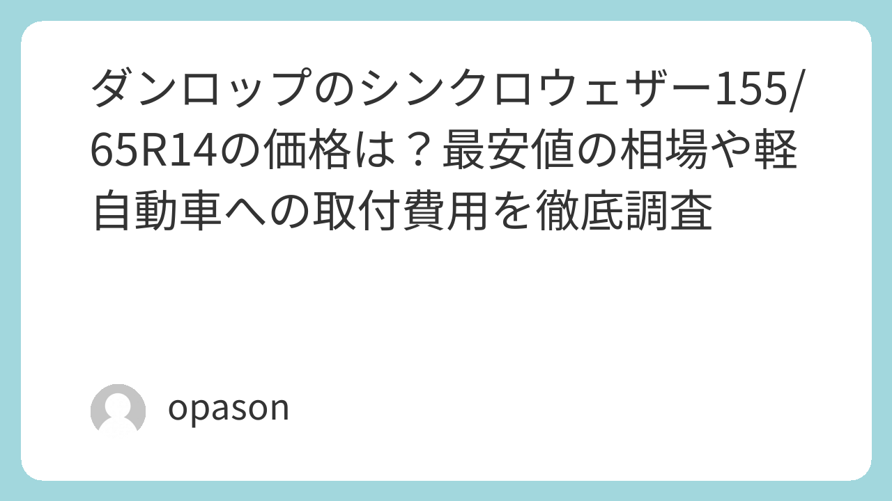 軽自動車オーナーにとって、まず気になるのはお財布事情ですよね。私が調査したダンロップ シンクロウェザー(155/65R14)の価格目安は以下の通りです。