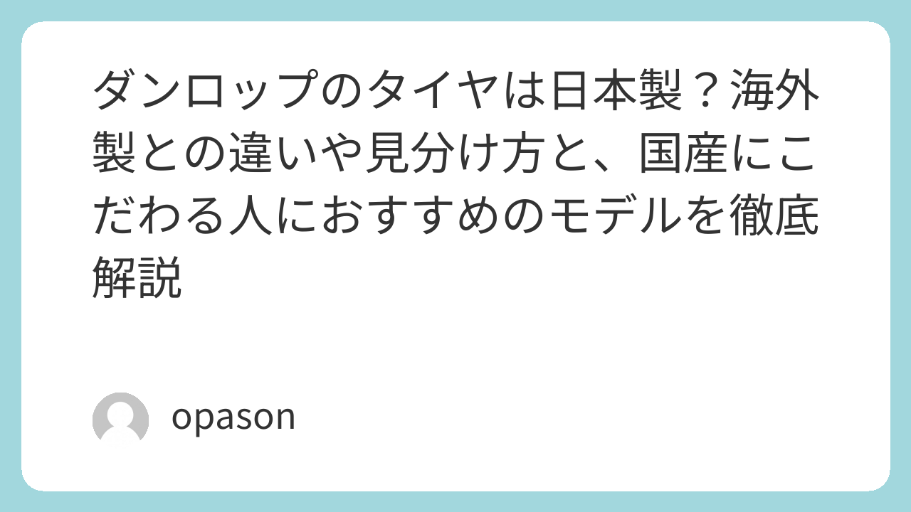 ダンロップのタイヤは日本製?海外製との違いや見分け方と、国産にこだわる人におすすめのモデルを徹底解説