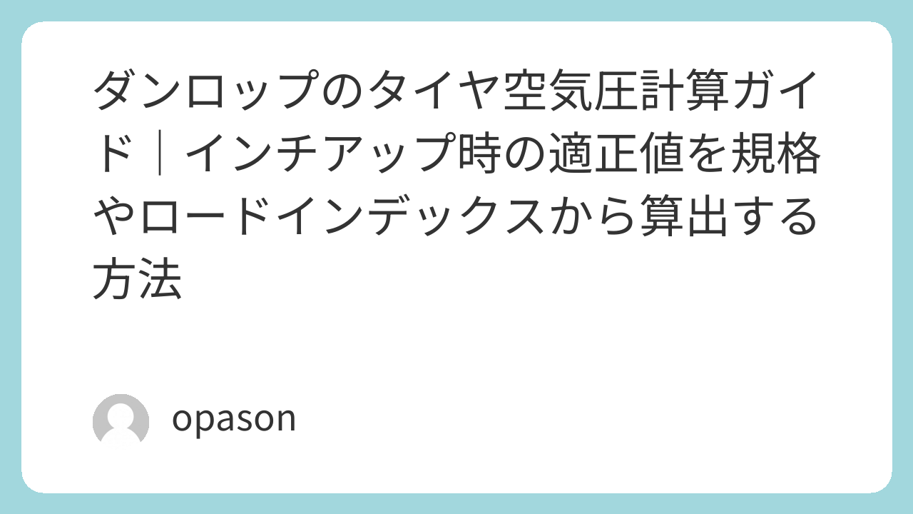 ダンロップのタイヤ空気圧計算ガイド|インチアップ時の適正値を規格やロードインデックスから算出する方法