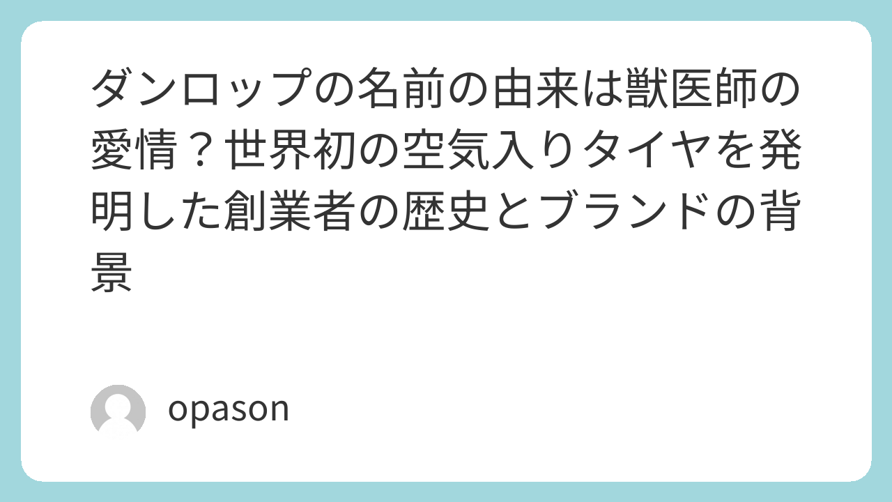 ダンロップの名前の由来は獣医師の愛情?世界初の空気入りタイヤを発明した創業者の歴史とブランドの背景
