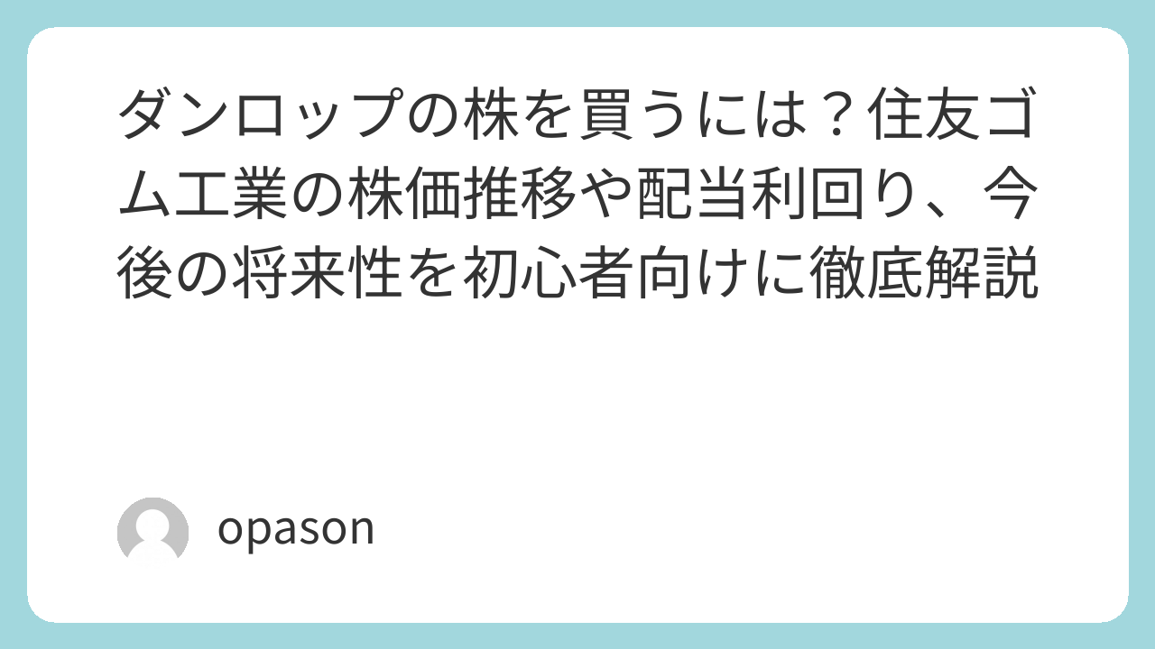 単なる「数字のやり取り」としての投資ではなく、自分の好きなブランドを支え、その成長を一緒に喜ぶ。そんな「体温の通った投資」を、住友ゴム工業(5110)から始めてみてはいかがでしょうか。