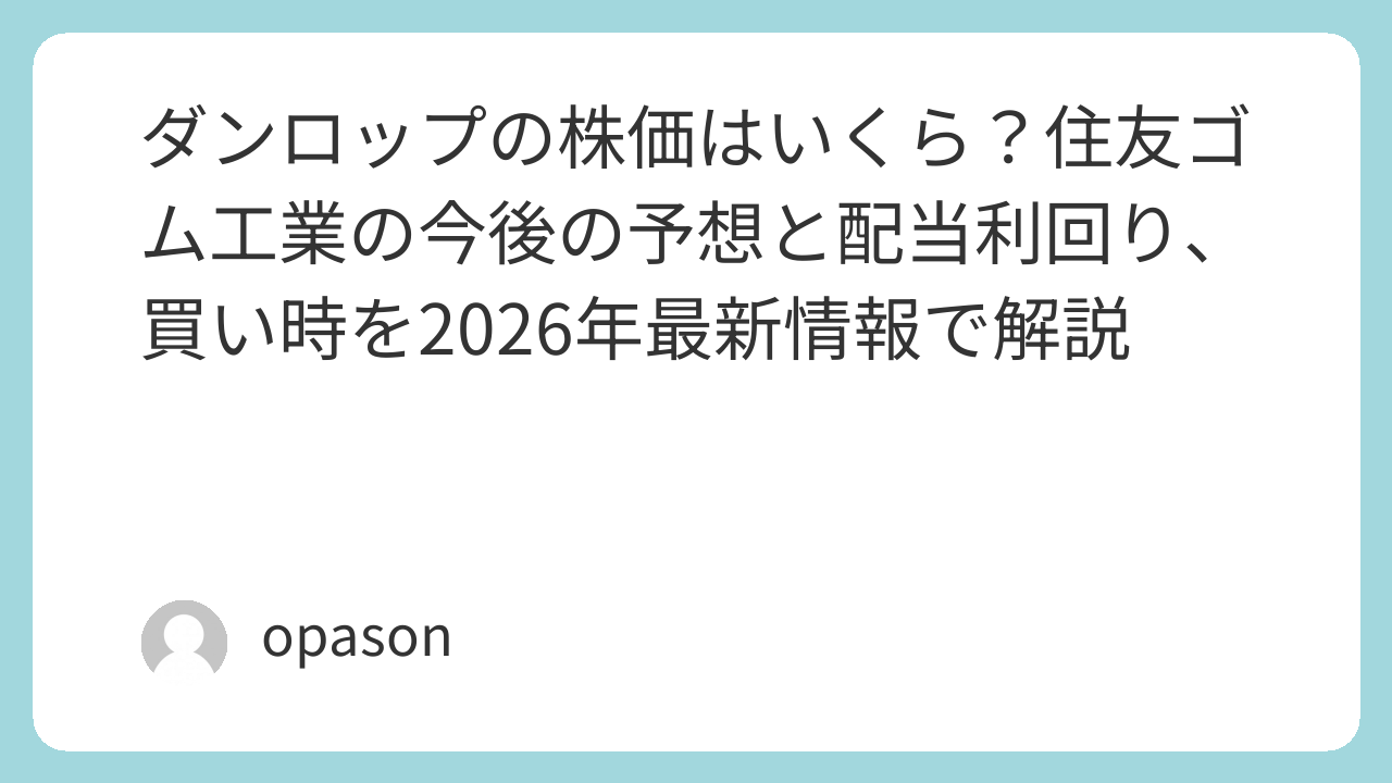 ダンロップの株価はいくら?住友ゴム工業の今後の予想と配当利回り、買い時を2026年最新情報で解説