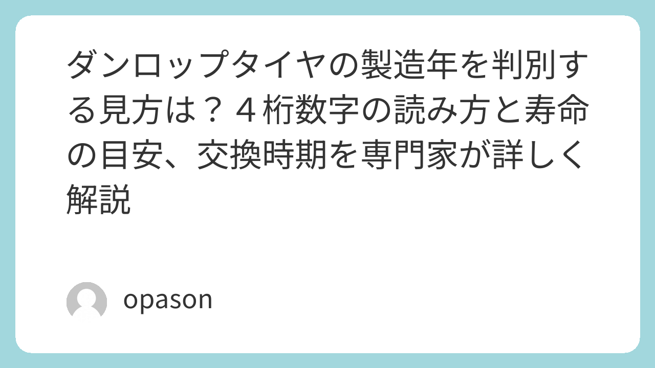 もし今、自分の車のダンロップタイヤが何年製か思い出せないなら、今すぐ駐車場へ行ってサイドウォールを確認してみてください。その4桁の数字が、あなたに「安心」を教えてくれるか、「警告」を発しているか、自分の目で確かめることが安全への第一歩です。