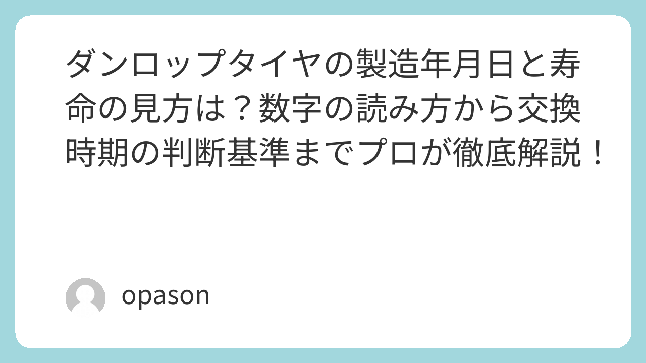 ダンロップタイヤの製造年月日と寿命の見方は?数字の読み方から交換時期の判断基準までプロが徹底解説!
