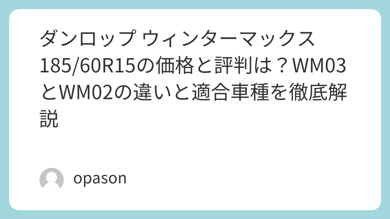 ダンロップ ウィンターマックス 185/60R15の価格と評判は?WM03とWM02の違いと適合車種を徹底解説