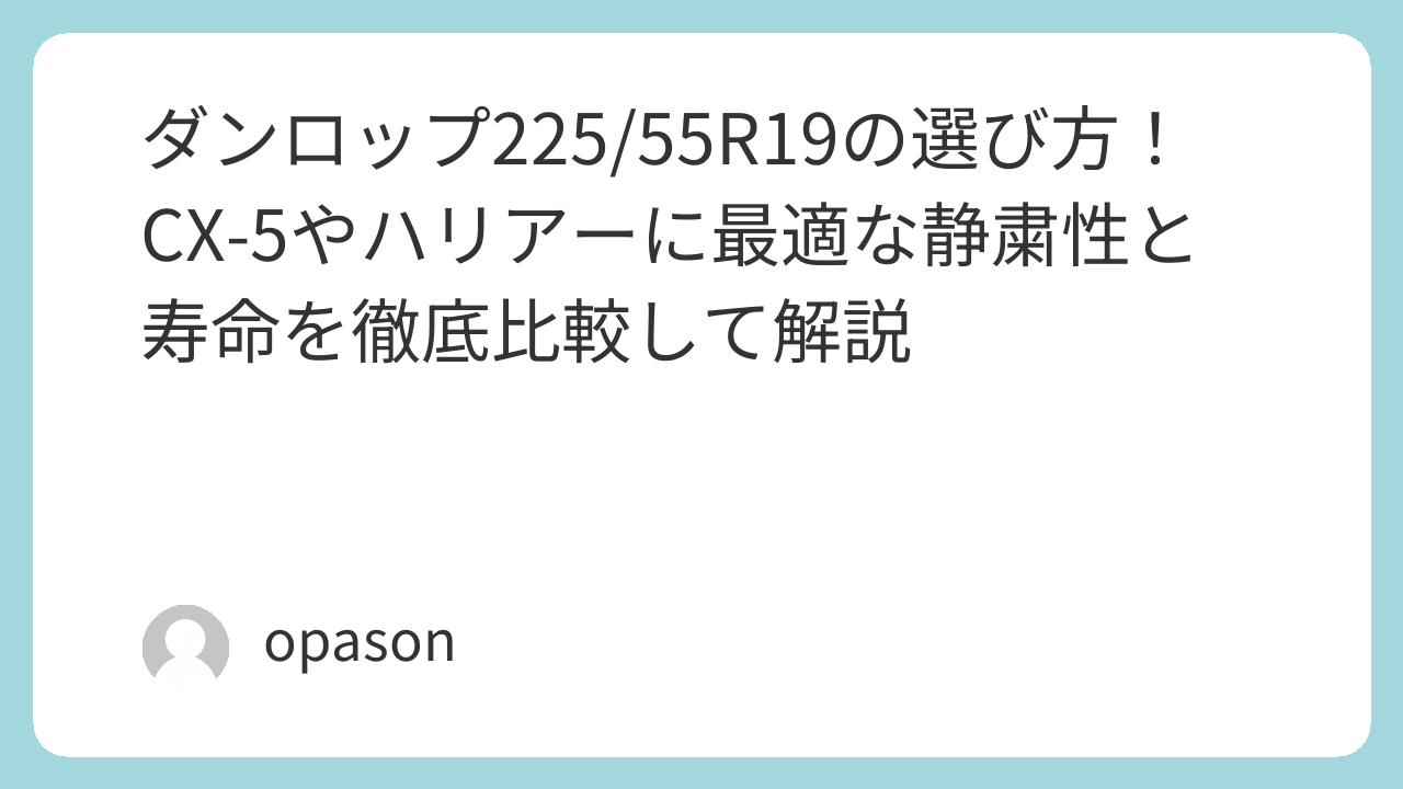 ダンロップ225/55R19の選び方!CX-5やハリアーに最適な静粛性と寿命を徹底比較して解説