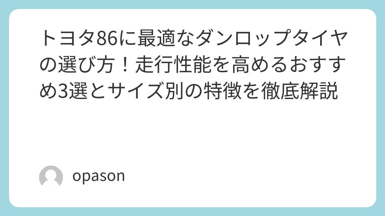 今回は、信頼の国産ブランドであるダンロップに焦点を当て、あなたの86を「理想の一台」に変えるためのタイヤ選びを実体験ベースで深掘りします。