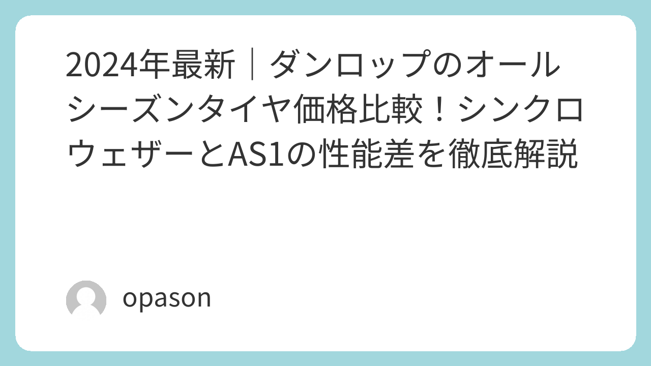 2024年最新|ダンロップのオールシーズンタイヤ価格比較!シンクロウェザーとAS1の性能差を徹底解説