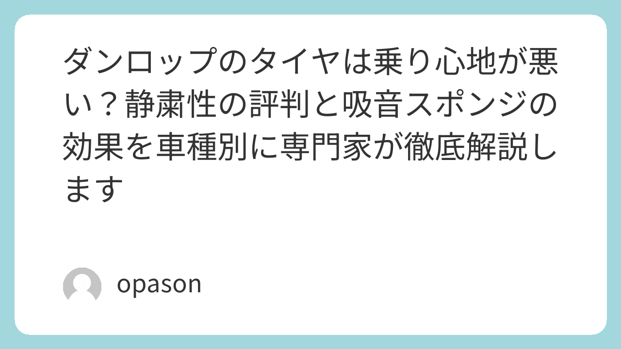 ダンロップのタイヤは乗り心地が悪い?静粛性の評判と吸音スポンジの効果を車種別に専門家が徹底解説します