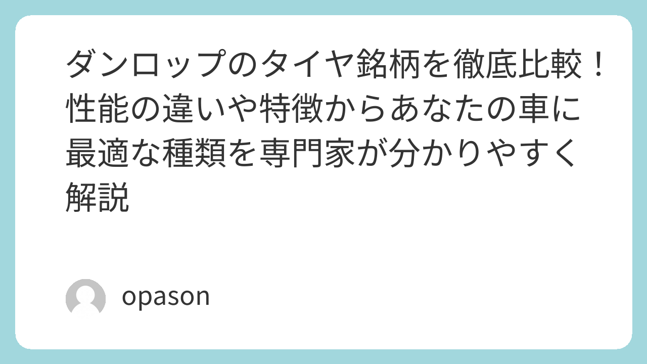 ダンロップのタイヤ銘柄を徹底比較!性能の違いや特徴からあなたの車に最適な種類を専門家が分かりやすく解説