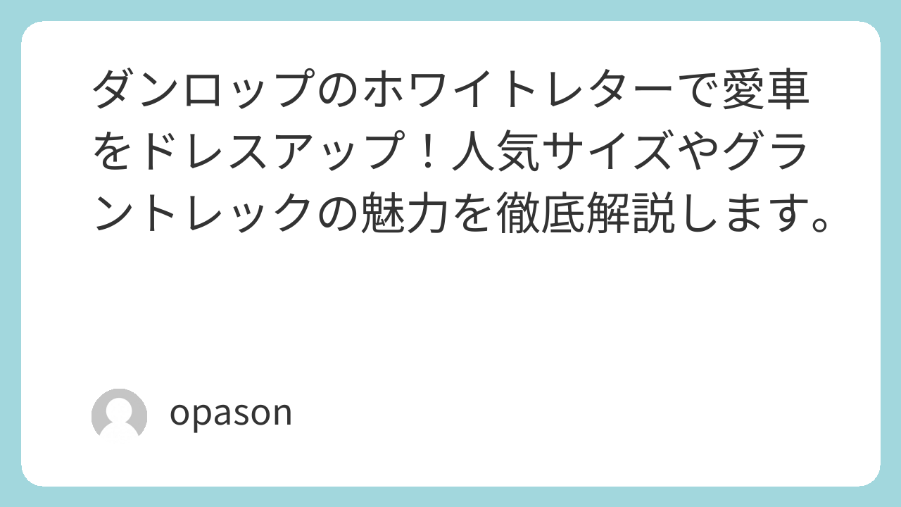 タイヤをダンロップのホワイトレターに変えるだけで、駐車場の自分の車を見るたびに「やっぱりカッコいいな」とニヤけてしまう。そんな体験をぜひ味わってほしいと思います。