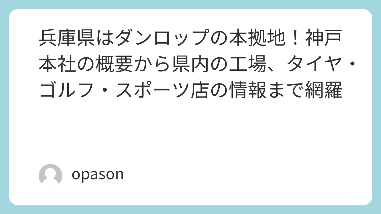 兵庫県はダンロップの本拠地!神戸本社の概要から県内の工場、タイヤ・ゴルフ・スポーツ店の情報まで網羅