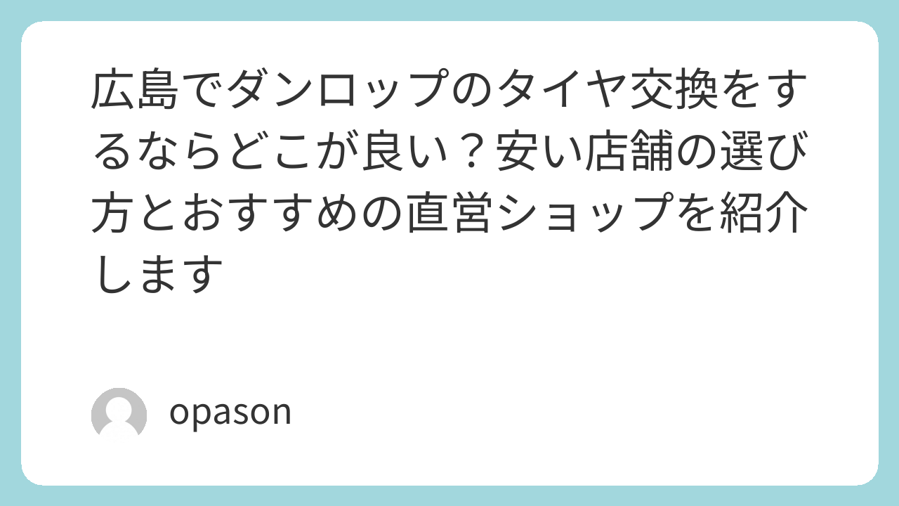 広島市内でダンロップタイヤを安く、確実に交換できる店舗選び
