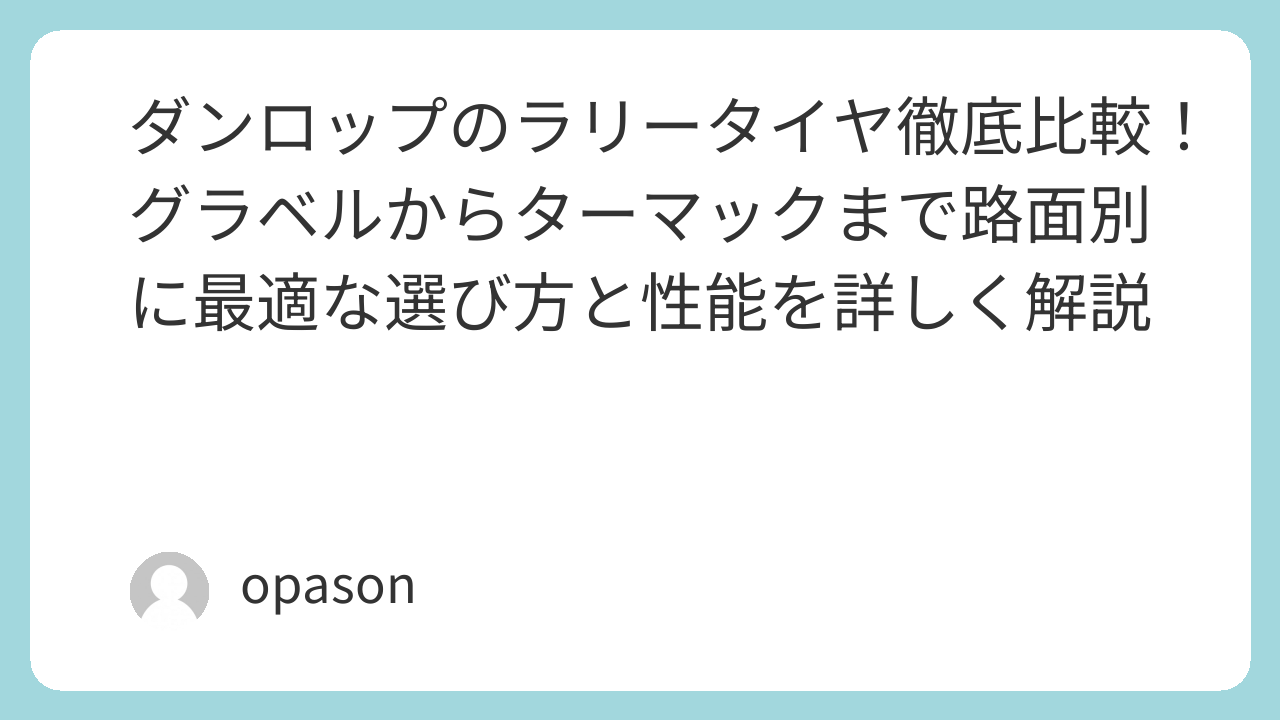 ダンロップのラリータイヤ徹底比較!グラベルからターマックまで路面別に最適な選び方と性能を詳しく解説