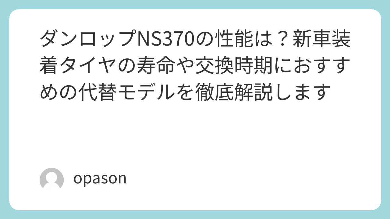 ダンロップ NS370は、新車時の感動を支えてくれる素晴らしいタイヤです。しかし、交換のタイミングが来たら、自分のライフスタイルに合わせてエナセーブ EC204などの市販モデルに目を向けることで、より安く、あるいはより快適なカーライフが手に入ります。
