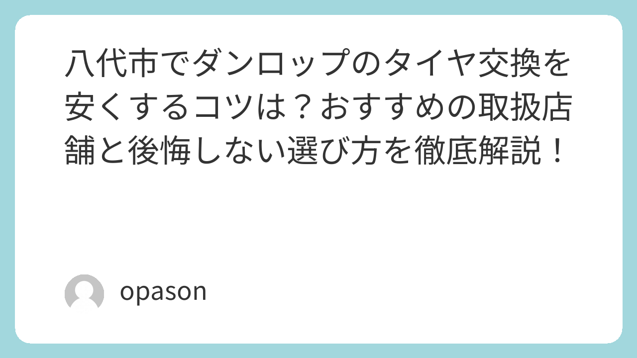 八代市でダンロップのタイヤ交換を安くするコツは?おすすめの取扱店舗と後悔しない選び方を徹底解説!