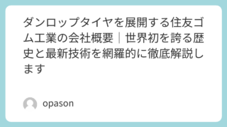 未分類 ダンロップタイヤを展開する住友ゴム工業の会社概要|世界初を誇る歴史と最新技術を網羅的に徹底解説します