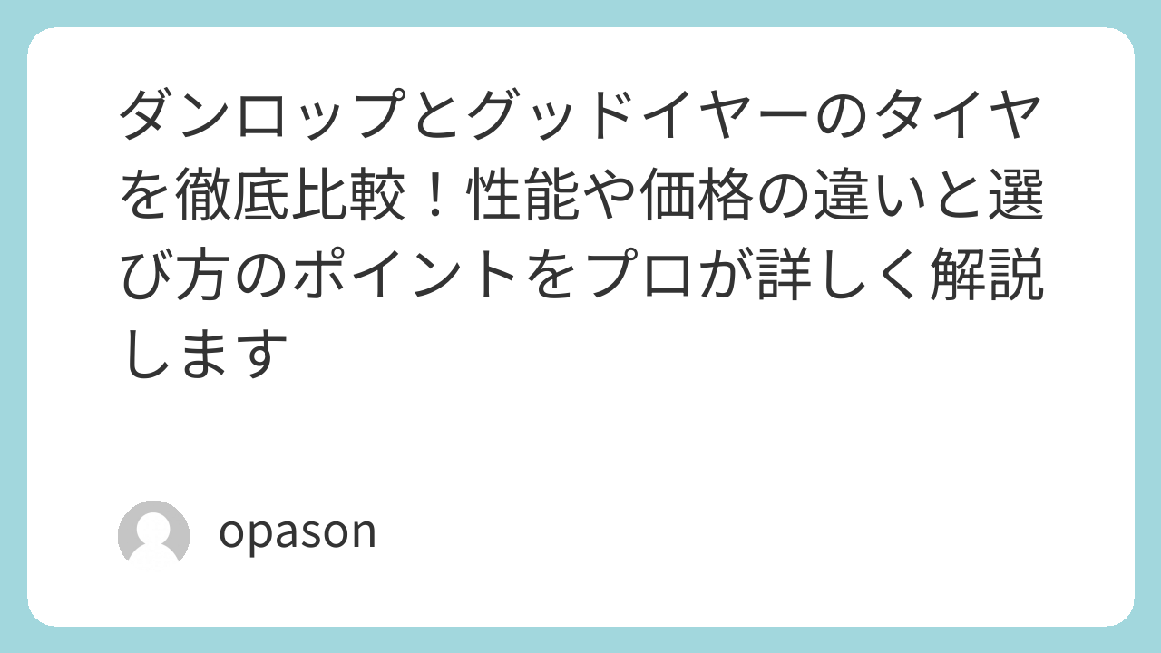 「次のタイヤ、ダンロップとグッドイヤーで迷っているんだけど、結局どっちがいいの?」