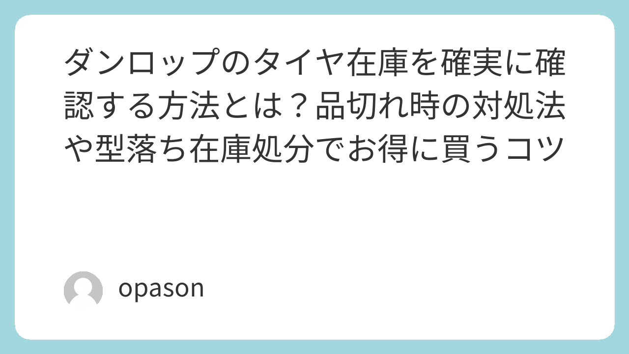 ダンロップのタイヤ在庫を確実に確認する方法とは?品切れ時の対処法や型落ち在庫処分でお得に買うコツ
