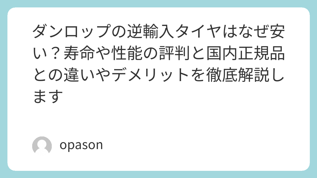 今回は、私の実体験を交えながら、ダンロップの逆輸入タイヤの真実をどこよりも詳しくお伝えします。