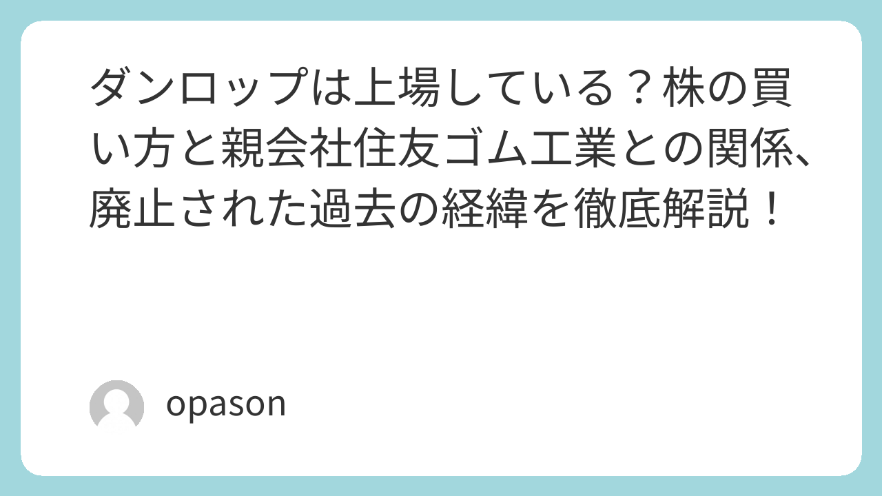 「憧れのダンロップのタイヤを愛車に履かせたし、いっそ株主になって応援したい!」そんな熱い思いで証券口座を開こうとしたあなた、ちょっと待ってください。実は「株式会社ダンロップ」という名前の会社を探しても、現在の東証上場銘柄リストには出てこないのです。