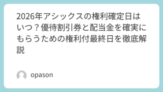 未分類 2026年アシックスの権利確定日はいつ?優待割引券と配当金を確実にもらうための権利付最終日を徹底解説