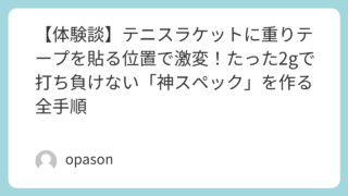 「今のラケット、悪くないけどあと一歩何かが足りない……」そう感じたことはありませんか?実は、新しいラケットに買い替えなくても、わずか数百円のカスタムでその悩みは解決できるかもしれません。私自身、長年「あと少しだけパワーがあれば相手の強打を押...