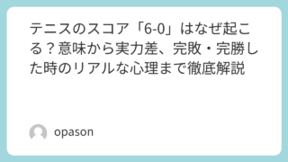 テニスの試合を観戦したり、実際にコートに立ったりしていると、時として「6-0」という極端なスコアを目にすることがあります。1ゲームも落とさずにセットを奪い取る、あるいは奪い取られる。この「完封」の状態は、テニス界ではその形から「ベーグル」と...