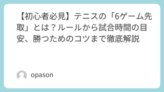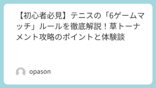 テニスのスクールを卒業して、いよいよ「草トーナメント(市民大会やインドアのオープン大会)」に挑戦しようとすると、必ず目にするのが「6ゲームマッチ」という言葉です。プロの試合で見かける「3セットマッチ」とは何が違うのか、そして何に気をつければ...
