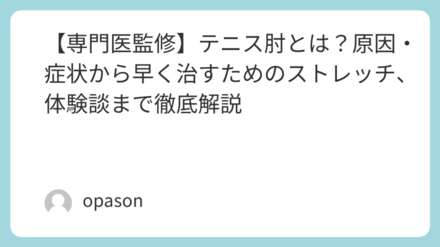 「タオルを絞るだけで電気が走る」「重いカバンが持てない」……。そんなテニス肘(外側上顆炎)の苦しみ、私も痛いほどよくわかります。実は私も1年近く、このしつこい肘の痛みに悩まされてきました。ネットで「テニス肘 治し方」と検索しても、出てくるの...