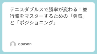 「いつまでも雁行陣のままだと、相手の強いストロークに押し切られてしまう……」そんな悩み、ありませんか?私もかつては「後ろで粘るのが正義」と信じて疑わないストローカーでした。しかし、中級以上の試合で壁にぶち当たり、意を決して並行陣に挑戦したこ...