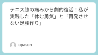 未分類 テニス膝の痛みから劇的復活!私が実践した「休む勇気」と「再発させない足腰作り」